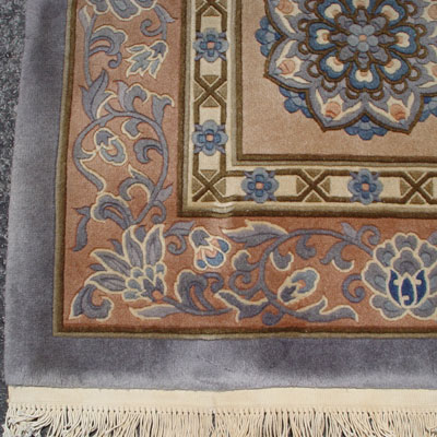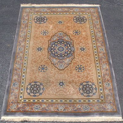 CHINESE SCULPTED CARPET: Cream field with silvery gray border, approx. 9' x 5'11''.