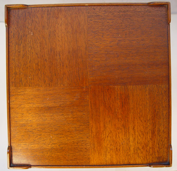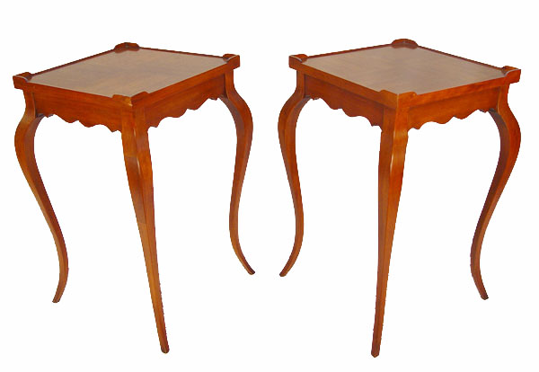 PAIR OF HEKMAN FURNITURE CO. MAHOGANY SIDE TABLES: Stamped mark to underside, four square parquetry tops with small corner galleries, delicate cabriole legs, approx. 25''h. x 15'' square.