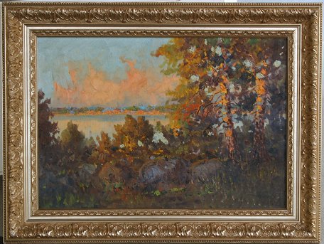 IMPRESSIONIST LANDSCAPE, Oil/C: Illegibly signed Hammar?, 17 1/2'' x 25 1/4'', silver gilt fine contemporary frame, 24'' x 32''. Est. $200/400**