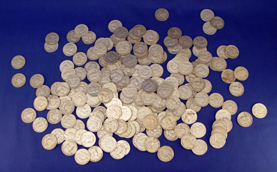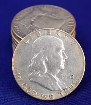 102 FRANKLIN SILVER US HALF DOLLARS: Includes 9 1950, 20 1951, 25 1952, 16 1953, 24 1954, 2 1956, 13 1957, 17 1958, 7 1959, 8 1960, 14 1961, 23 1962, 22 1963. Approx. 80 troy oz. total weight