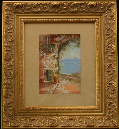 GIANNI, E., (Italian, 20th C): View of the Bay of Naples with Vesuvius, Gouache, 9 1/2'' x 6 1/2'', signed, embossed gilt contemporary frame, 20'' x 18''.