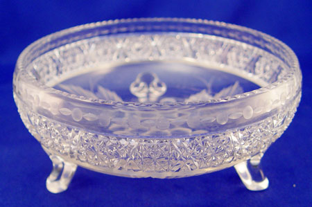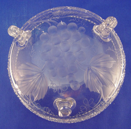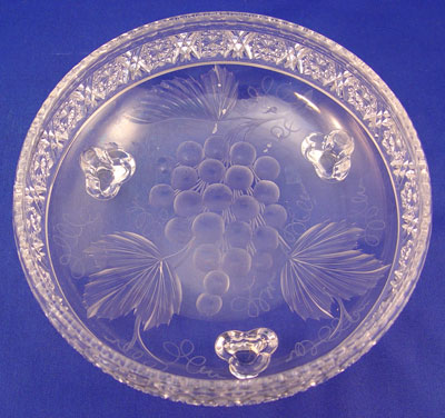 TUTHILL AMERICAN BRILLIANT GRAPE DESIGN CUT GLASS FOOTED BOWL: Cut in a grape design, 8'' X 4''.