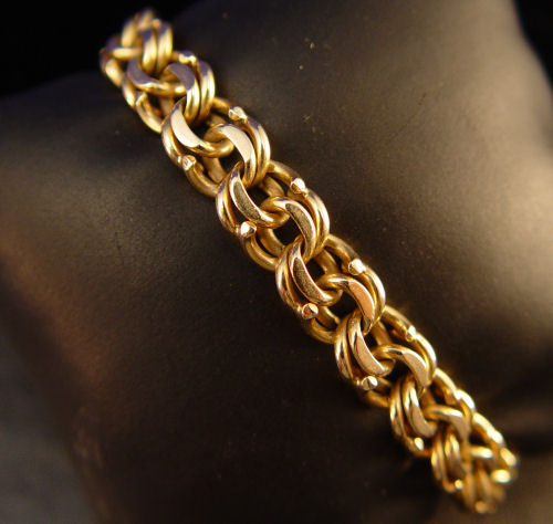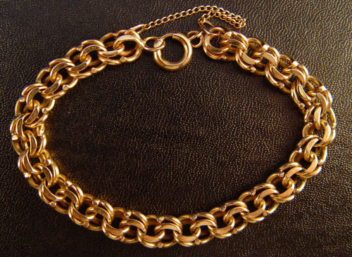 14K CHARM BRACELET: 14K yellow gold double circle charm bracelet. 7.5'' Spring ring clasp with safety chain attached. Weight: 22.3 grams.