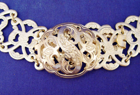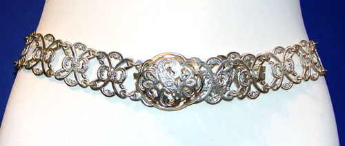 LADIES SILVER BELT: 34 1/8'' long. Approx. 6.7 troy oz. 40 per cent stamp on each link, illegible makers mark.