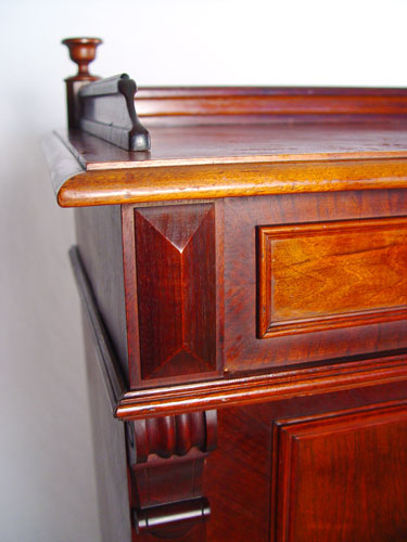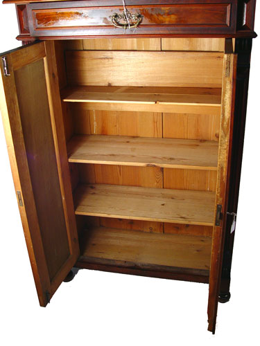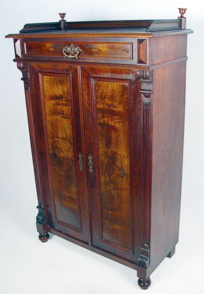 VICTORIAN WALNUT SIDE CABINET: Single full length drawer over double doors. Interior shelves. Richly grained walnut with panel doors. 57'' high x 36'' wide x 17 1/2'' overall