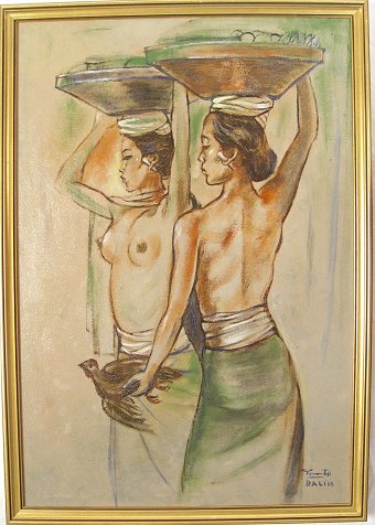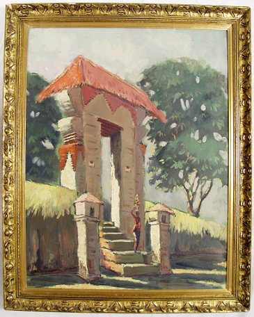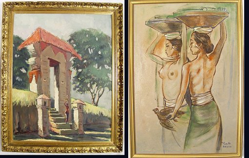 PAIR INDONESIAN/BALINESE? PAINTINGS: Nude study signed Yanto? and dated '68, 27'' x 18 3/4'', framed, 30'' x 21''; Figure in a Tropical Village Landscape, 26'' x 20'', unsigned, of good impressionist quality, framed, 30'' x 24''.