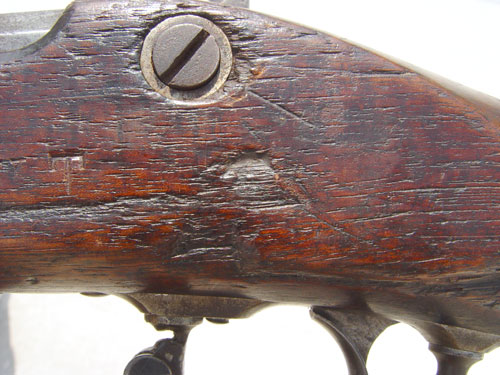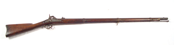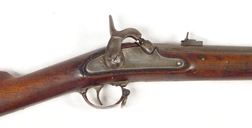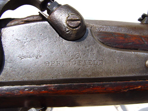 CIVIL WAR 1861 DATED US SPRINGFIELD PERCUSSION RIFLE: 1861 dated lock With US Springfield and full eagle. .58 caliber percussion action nice and tight. Barrel marked with VP inspectors mark. Original flip up sites. Complete stock with VT stamp. Please note 2 minor areas of repair to stock near end past 3rd ring and underside of butt stock. Butt plate marked with US. Original push rod. Barrel measures 40'', overall length 56 1/4''.