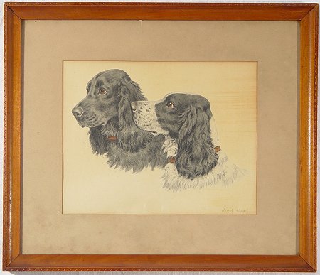 WOOD, Paul, (American, 1897-1964): Spaniel Portraits, Etching, signed in pencil lower right, sight size 9 1/2'' x 12 3/8'', framed, 16 5/8'' x 20 5/8''. Several spots of browning. Paul Wood studied art at both the Springfield School of Fine Arts and at the Art Students League in New York. During his career he became well known for his watercolors and etchings of animals, mostly those of various breeds of dogs. In the 1930's his etchings were published by the Paris Etching Society and exhibited in the United States and France.