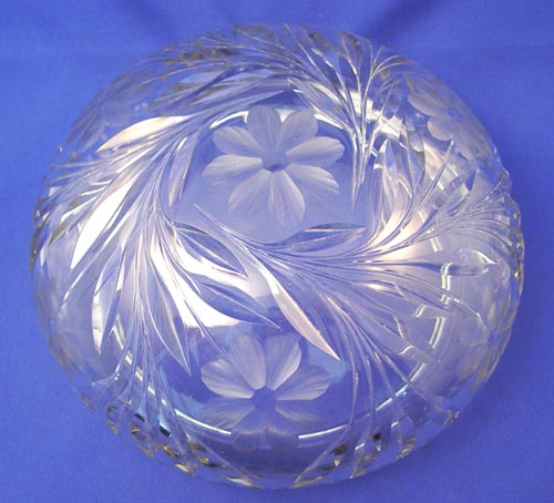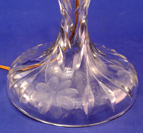 CUT GLASS LAMP attrib. PAIRPOINT: Cut flower design on base and matching shade. Shade has a 8'' rim. Lamp is 17 1/2'' high.