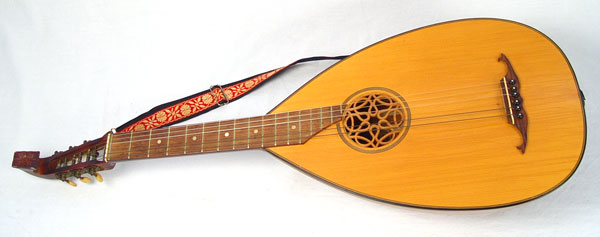 GERMAN RIB BACK ACOUSTIC MANDOLIN: Ca. 1967. Interior label ''Original Meister Gitarre Hopf Gebaut in Wehen Anno 1967''. 6 string, 36'' l.