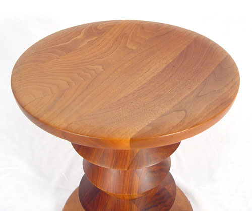 HERMAN MILLER EAMES TIME LIFE STOOL: Designed by Ray Eames for the lobby of the Time-Life building in New York. Can be set with either side up. Solid walnut construction. Measures 15'' high x 13'' top dia., 11'' bottom dia.