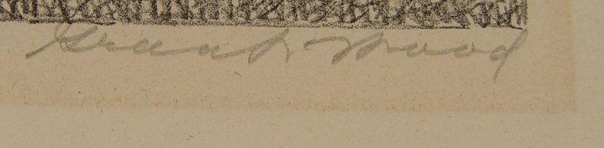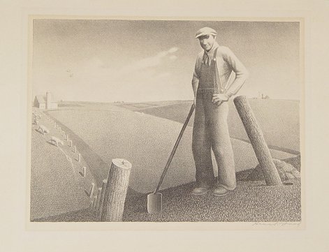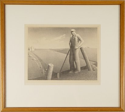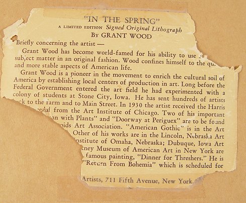 WOOD, Grant, (American, 1891-1942): ''In the Spring'', Lithograph, 12'' x 16'' full size with margins, pencil signed, AAA Edition label verso, framed, 18'' x 20''. Minor light burn, museum taped.