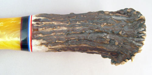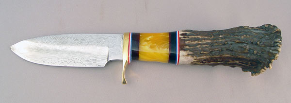 H.L. HARVEY HANDMADE HUNTING KNIFE WITH DAMASCUS BLADE: 512 fold Damascus watered blade with stag horn handle. 9 1/2'' overall length. No sheath.