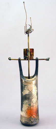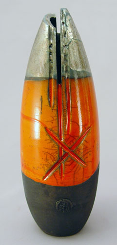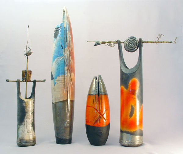 4 JAPANESE STUDIO RAKU POTTERY VESSELS: Group of 4 contemporary studio Raku. 9 - 17'' length.