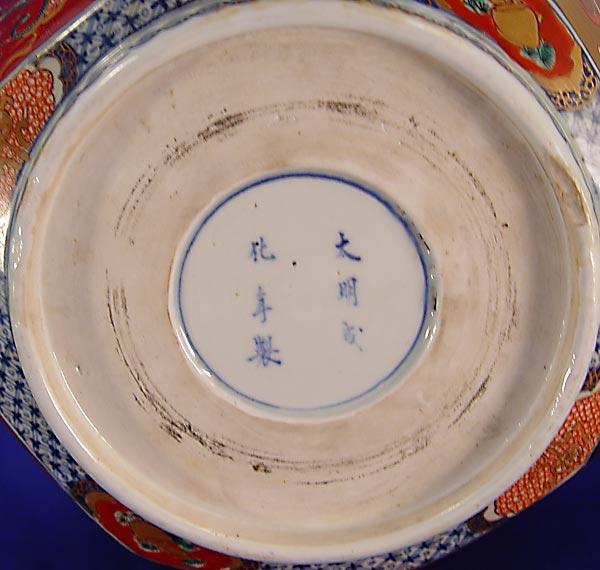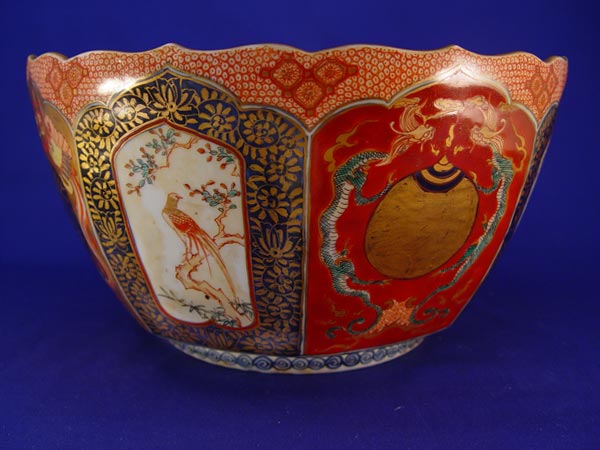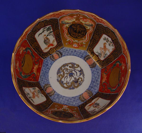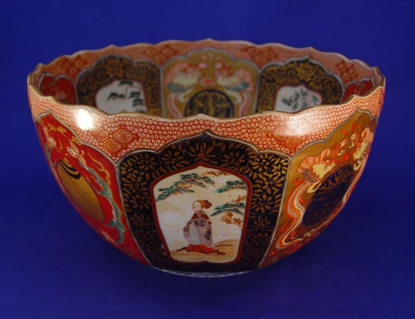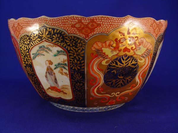 JAPANESE IMARI PORCELAIN BOWL: Signed under glaze. Scallop rim, 6 1/4'' deep, 11 1/2'' dia.