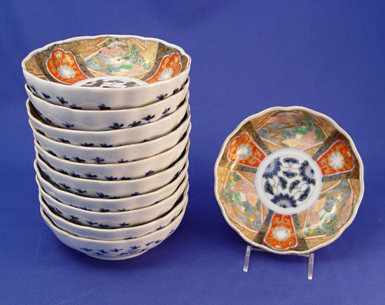 SET OF 11 JAPANESE IMARI BOWLS: Signed in blue characters under glaze. 2''h., 6 1/8'' dia.