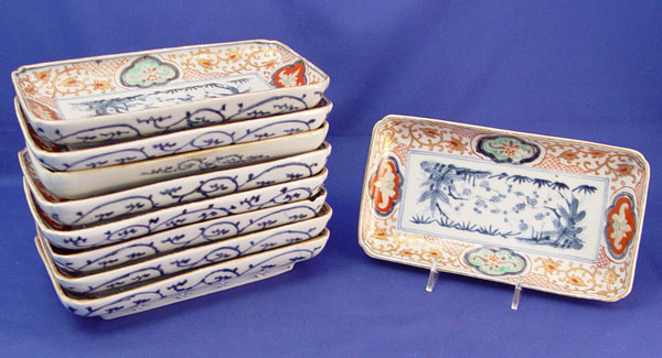 SET OF 9 JAPANESE IMARI RECTANGULAR DISHES: 1 1/2''h. x 4 1/2'' c 8 1/2''. Signed underglaze.