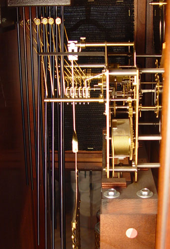 HOWARD MILLER GRANDFATHER CLOCK 59TH ANNIVERSARY: Model 610-329 with #159 triple chime cable driven works. Moving moon phase dial. Measures approx 87'' high x 19 3/4'' wide x 13 1/4'' deep.
