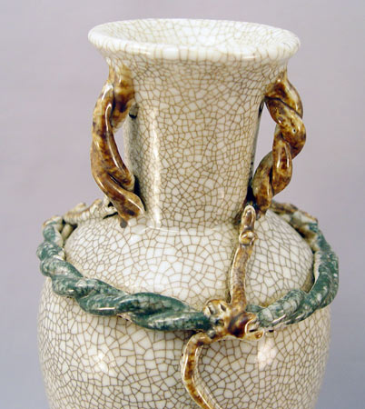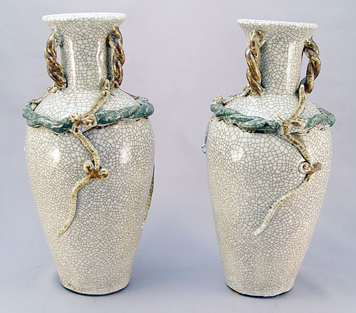 PAIR EARLY 20TH CENTURY CHINESE CRACKLE GLAZE VASES: Chinese folk pottery, 10 3/4''.