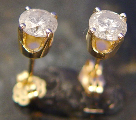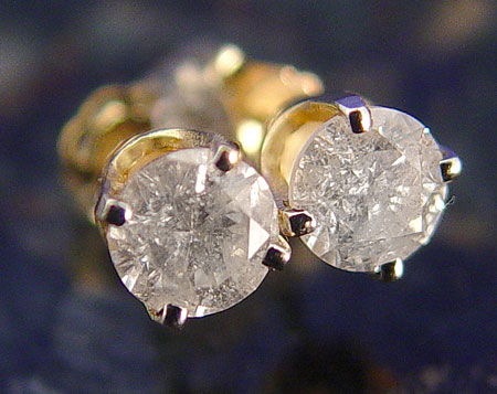 .75 CTW DIAMOND SOLITAIRE EARRINGS: 14K yellow gold solitaire earrings: WEIGHT: .75 Ct. Approx. Rated I1-I2 in clarity and G-H in color. Post and nut closures.