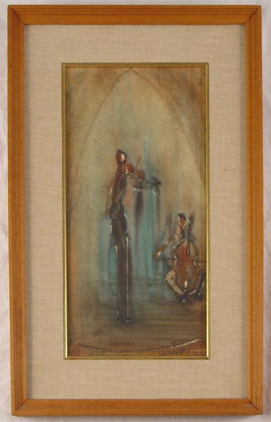 KOSSONOGI, Joseph, (Israel, 1908-1981): Musical Duet, Watercolor, 13'' x6'' sight size, signed, framed, 18'' x 11''.