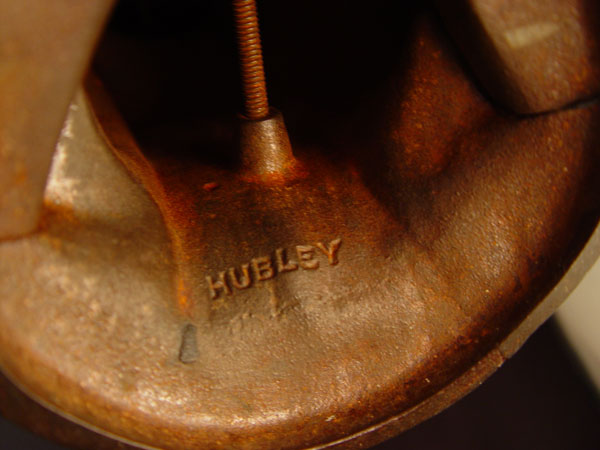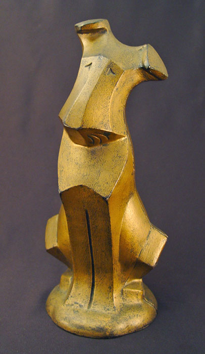 HUBLEY CAST IRON MODERNISTIC DOG DOORSTOP: Signed Hubley figural dog in their ''Modernistic'' design. Measures 10 3/4'' high x 4 3/4''.