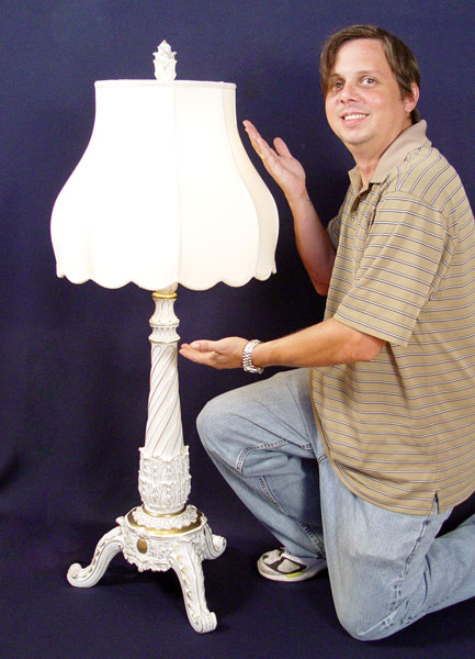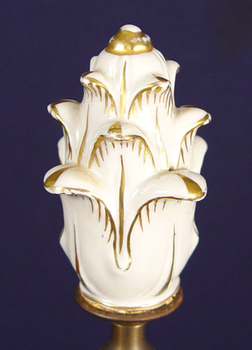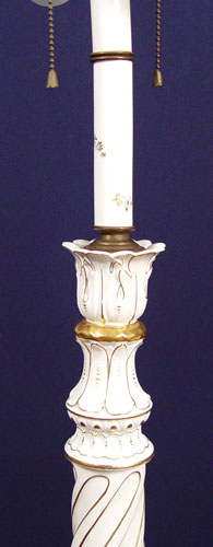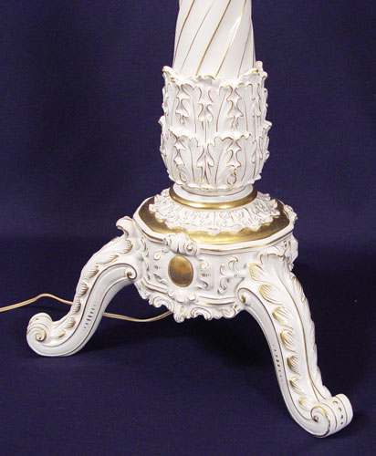 LARGE SCHIERHOLZ GERMAN PORCELAIN LAMP: 49'' high. White porcelain with original matching finial.