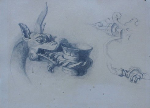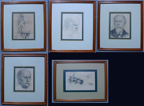 5 GERMAN? PENCIL DRAWINGS: Various Sketches comprising portraits and still lifes, approximately 11 1/2'' x 9 1/2'', one piece is signed, matching wooden frames with wear, approximately 24'' x 22''.
