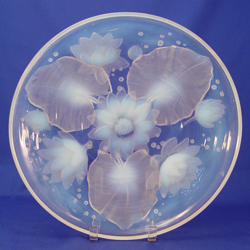 VERLYS ART GLASS WATER LILY BOWL: Etched signature on the underside, 13 3/4'' dia., 2 1/2''h.
