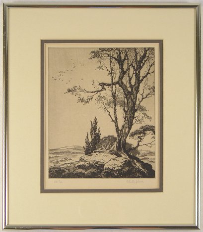 HABERER, C. Winston, (American, 20th C): ''Hill Top'', Etching, image size 8 1/4'' x 7'', pencil signed and titled, contemporary frame, 14 1/2'' x 12 3/4''.