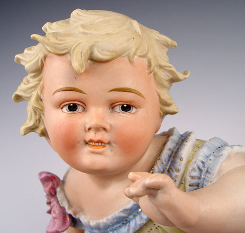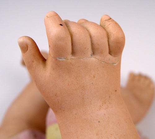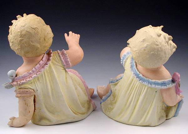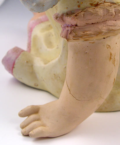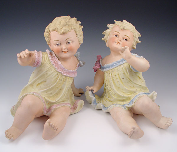2 LARGE BISQUE PIANO BABIES: 1) 11'' all bisque, hand towards face, unmarked 2) 10 1/2'' tall. (Note professionally repaired arm.