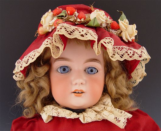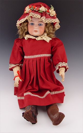 27'' TALL ARMAND MARSEILLE GERMAN BISQUE HEAD DOLL: Big blue open eyes, open mouth. Fully jointed composition body. Head marked A 12 M.