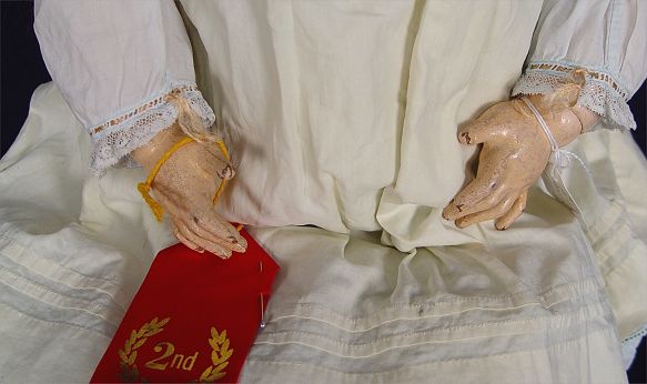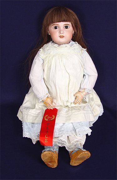 SFBJ PARIS FRENCH PORCELAIN HEAD DOLL 26'': Florida Space Coast second place prize winning doll in 1991. Open brown eyes, open mouth showing 6 teeth, pierced ears, long brown wig. + Fully jointed composition body.