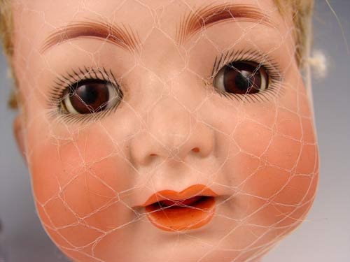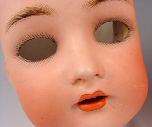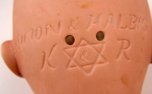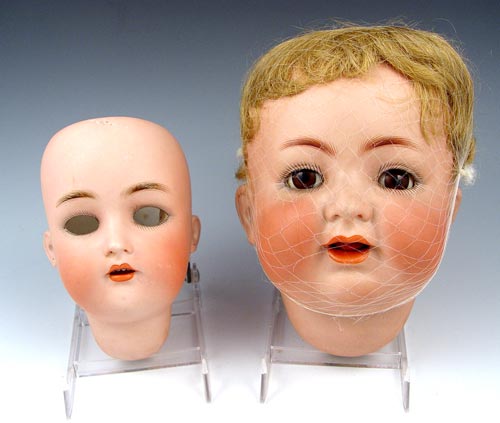 2 SIMON & HALBIG KAMMER RHINEHARDT BISQUE DOLL HEADS: Each marked Simon & Halbig K*R. The larger is #58, has her eyes and wig. The smaller is 126 / 62, no eyes or wig.