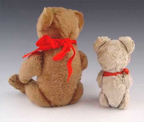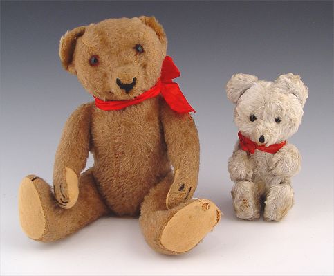 2 ANTIQUE BEARS: One (11'') jointed teddy and a (7'') jointed long haired teddy.