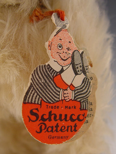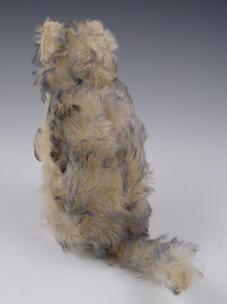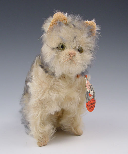 SCHUCO YES NO CAT: 7'' tall, green glass eyes Schuco paper label.