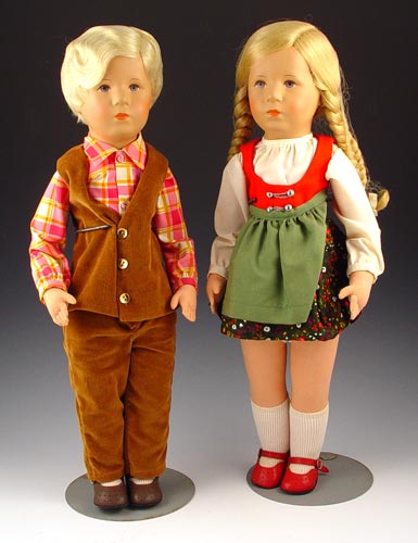TWO KATHE KRUSE BOY AND GIRL DOLLS: 20'' each, ca. 1975. Mint in box.