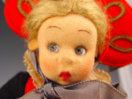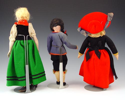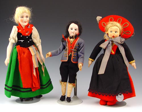 3 PIECE DOLL LOT INCLUDES LENCI: To include 1) 9'' Lenci all original w/ tag, made in Italy, red dress & hat. 2) 10 1/2'' painted bisque, German dress, all original. 3) 9'' Mr. NX 120 all original, braids, jacket, vest & knickers.