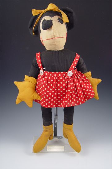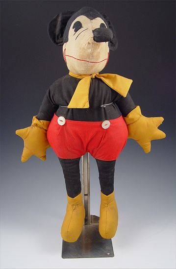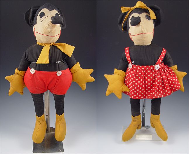 1930'S MICKEY & MINNIE MOUSE CLOTH DOLLS: Hand made in the style of Charlotte Clark. Cloth with felt eyes.