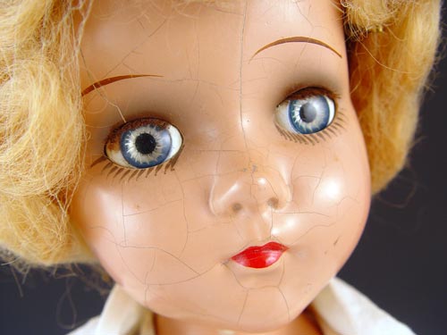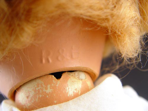 21'' COMPOSITION ARRANBEE DOLL CO.: Composition Doll with sleepy eyes. Original dress & wig. Damage on left hand, paint loss on neck, crackle to face. Ca 1944-1945 Marked R & B.