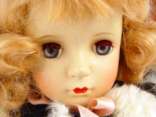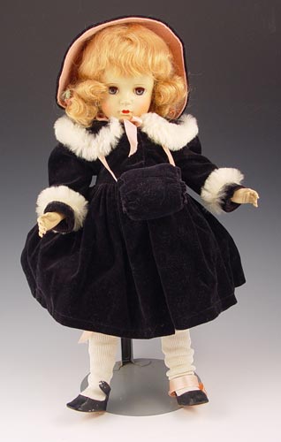 18'' MADAME ALEXANDER MCGUFFEY ANA CA. 1949: Elaborate original clothing, including muff and hat, tag missing. Hard plastic doll.