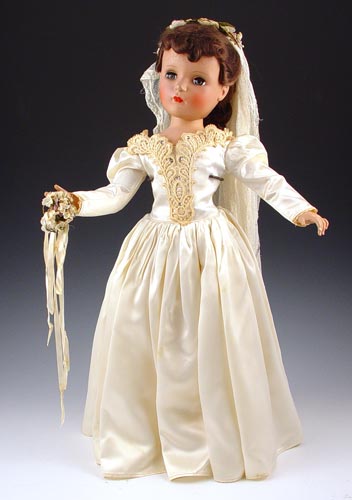 21'' HARD PLASTIC MADAME ALEXANDER BRIDE DOLL: All original, circa 1950-1951