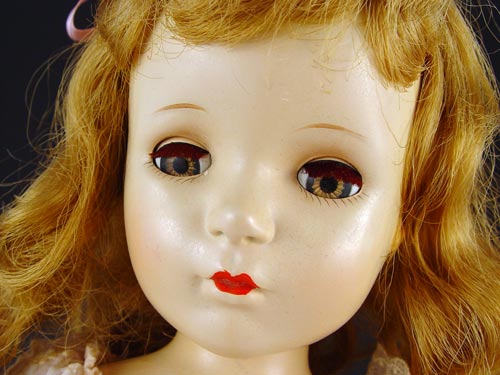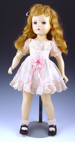21'' HARD PLASTIC MADAME ALEXANDER WENDY ANN CA. 1948-49: Sleepy eyes. All original in pink dress. Tag cut but under collar in back.