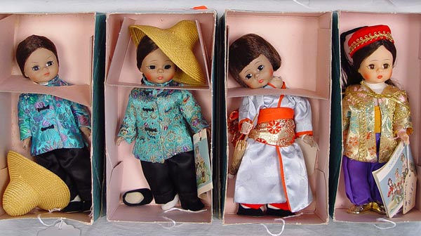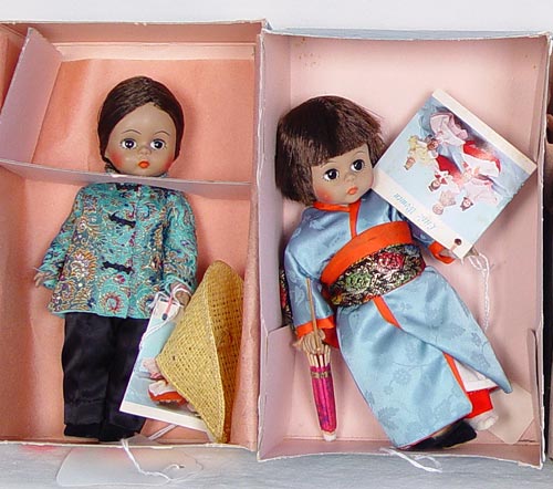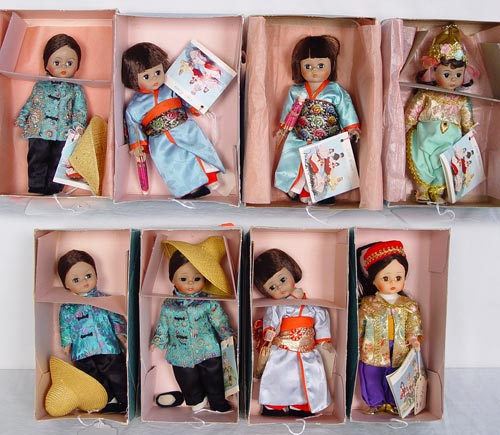 8 MADAME ALEXANDER INTERNATIONAL ASIAN DOLLS 6'': All in boxes. Includes 3 China, 3 Japan, 1 Turkey and 1 Thailand doll.