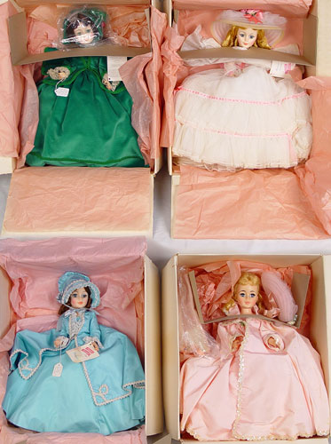 LOT OF 4 21'' MADAME ALEXANDER DOLLS: Includes Cornelia 21'' Portrait 1976; Agatha 21'' Portrait with cape, shoes, slip & hat, spotting on dress; Scarlet 21'' Portrait 1979; Melanie 21'' Portrait 1979.