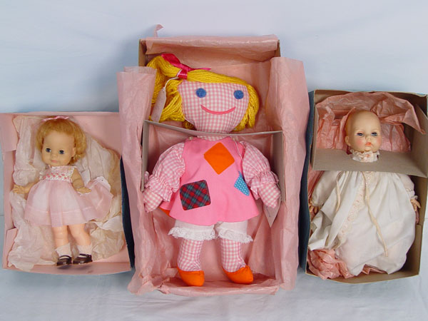 3 MADAME ALEXANDER BABY DOLLS: Includes Janie 11''; Funny 17''; Victoria 13''. In original boxes.