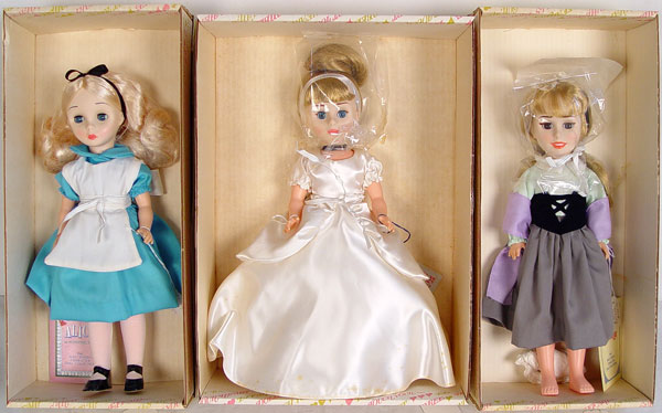 THREE EFFANBEE DOLLS: 1) Sleeping Beauty, 14'' 2) Alice In Wonderland, 14'' 3)Cinderella, 14''. All original clothes and boxes.