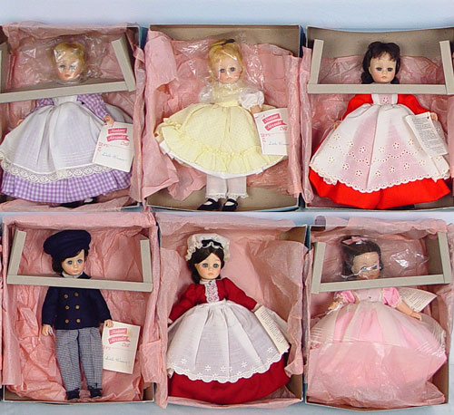 6 MADAME ALEXANDER ''LITTLE WOMEN'' DOLLS: Includes Jo, Meg, Laurie, Mamie, Amy and Beth. All 11'' tall.