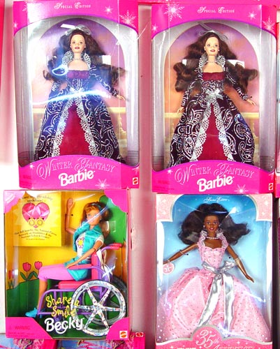 21 BARBIE DOLLS MIB: To include Share a Smile Becky, Coca Cola Picnic, Hawaiian, Pretty Choices, Water Fantasy, Walmart 35th Anniversary and Barbie 35th Anniversary copy of the original doll.