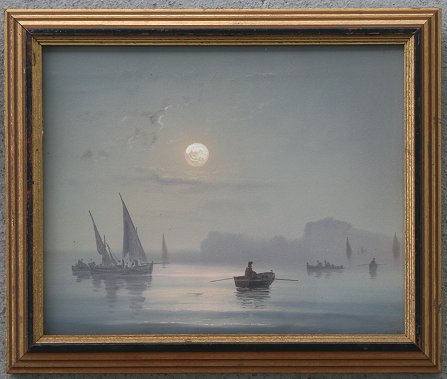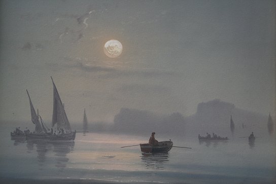 NEAPOLITAN SCHOOL GOUACHE OF BOATS IN MOONLIGHT: 8'' x 10'', unsigned, framed, 9 1/2'' x 11'', circa 1910.